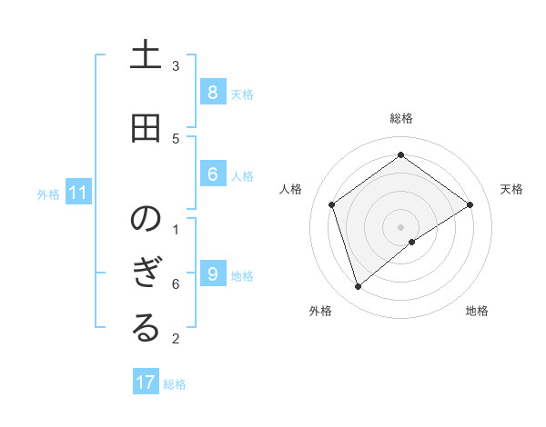 土田 のぎるさんを姓名の画数から五運を鑑定