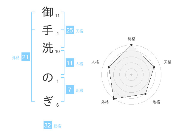 御手洗 のぎさんの外格は21画の5点!