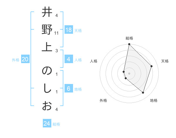 井野上 のしおさんを姓名の画数から五運を鑑定