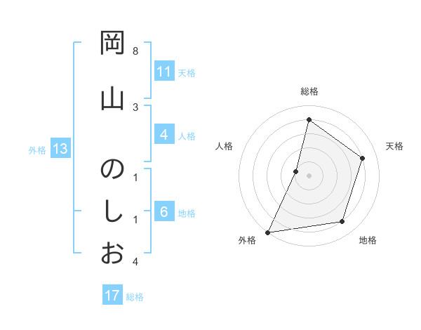 岡山 のしおさんの総格は17画の4点!