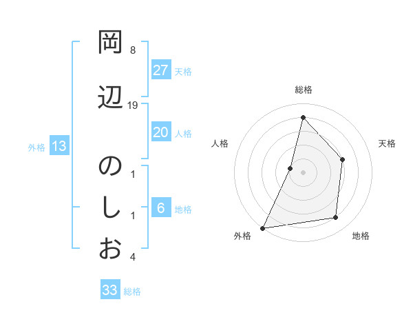 岡辺 のしおさんを姓名の画数から五運を鑑定