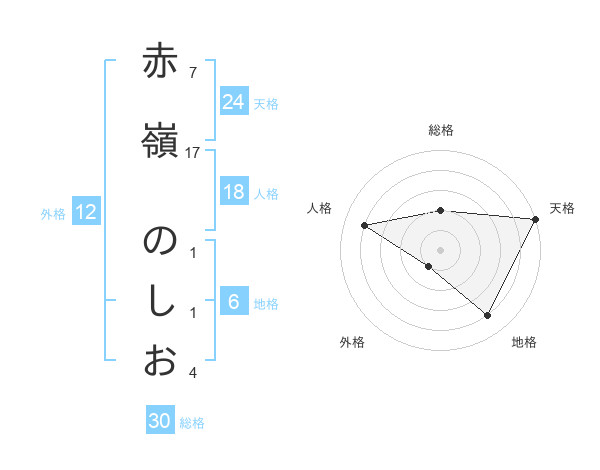 赤嶺 のしおさんを姓名の画数から五運を鑑定
