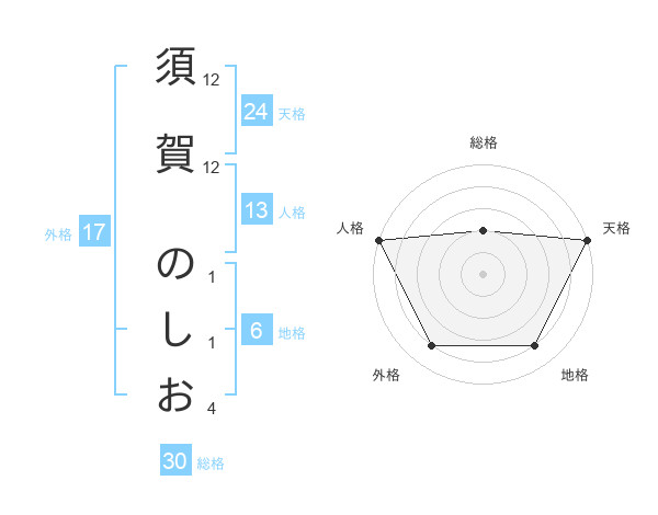 須賀 のしおさんを姓名の画数から五運を鑑定