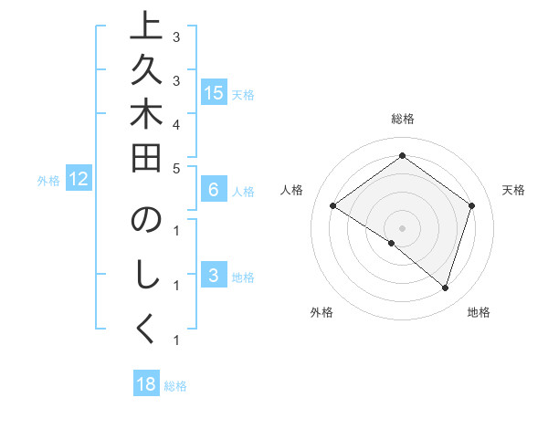 上久木田 のしくさんの総格は18画の4点!