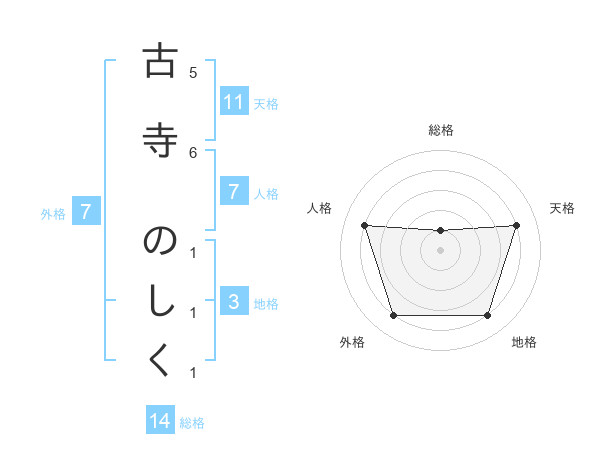 古寺 のしくさんの総格は14画の1点!