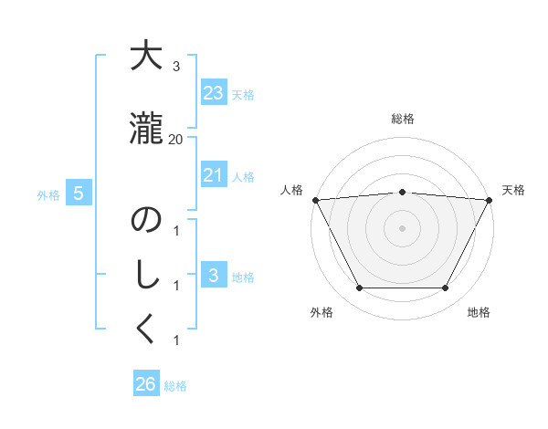 大瀧 のしくさんを姓名の画数から五運を鑑定