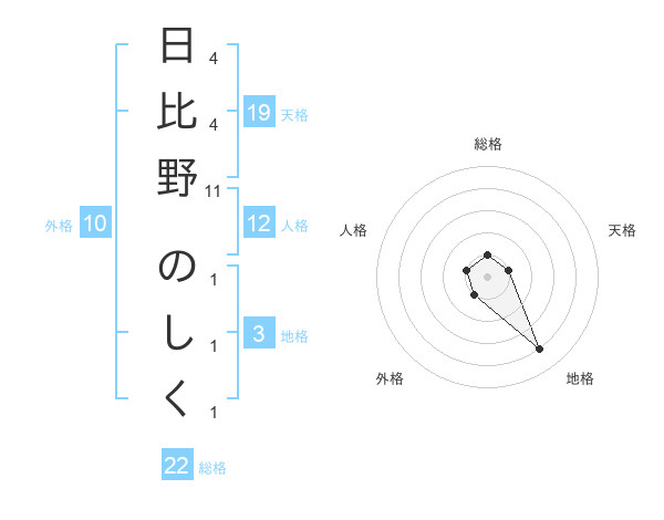 日比野 のしくさんを姓名の画数から五運を鑑定