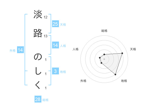 淡路 のしくさんを姓名の画数から五運を鑑定