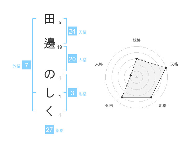 田邊 のしくさんの天格は24画の5点!