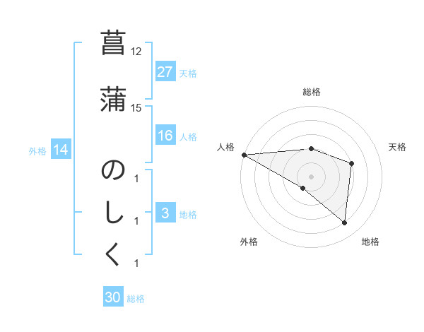 菖蒲 のしくさんの天格は27画の3点!