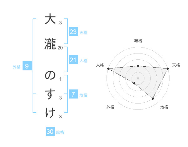 大瀧 のすけさんを姓名の画数から五運を鑑定