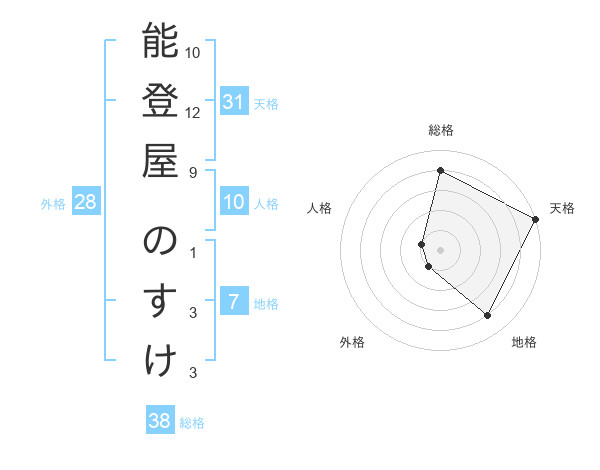 能登屋 のすけさんを姓名の画数から五運を鑑定