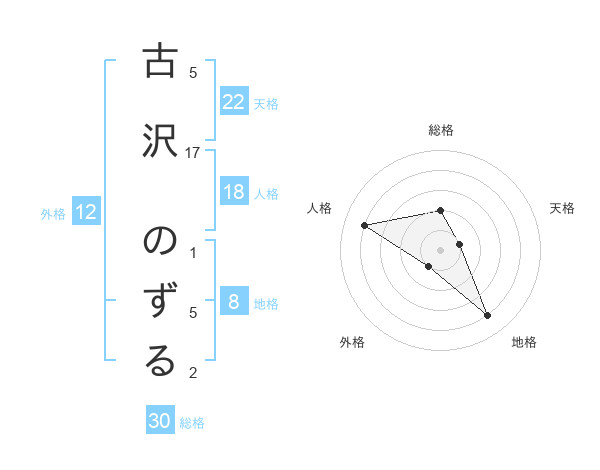 古沢 のずるさんを姓名の画数から五運を鑑定