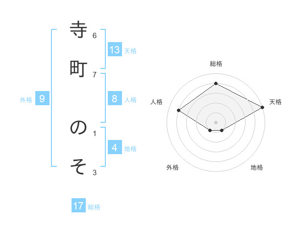 寺町 のそさんの天格は13画の5点!
