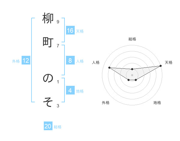 柳町 のそさんの天格は16画の5点!