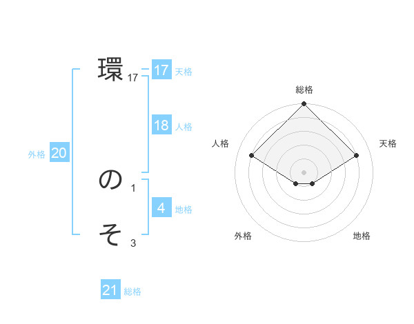 環 のそさんの天格は17画の4点!