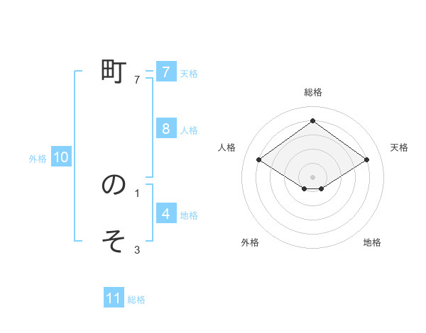 町 のそさんの総格は11画の4点!