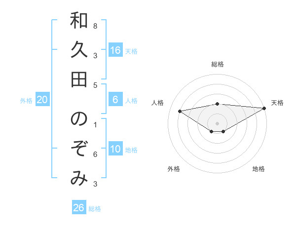 和久田 のぞみさんを姓名の画数から五運を鑑定