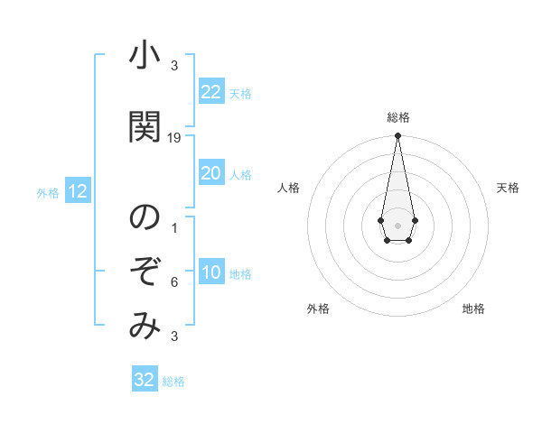 小関 のぞみさんを姓名の画数から五運を鑑定