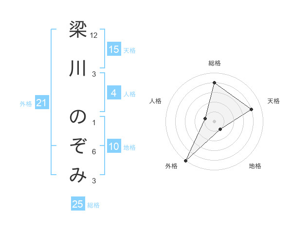 梁川 のぞみさんを姓名の画数から五運を鑑定