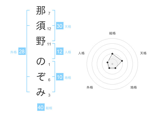 那須野 のぞみさんの総格は40画の2点!