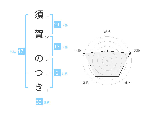 須賀 のつきさんの天格は24画の5点!