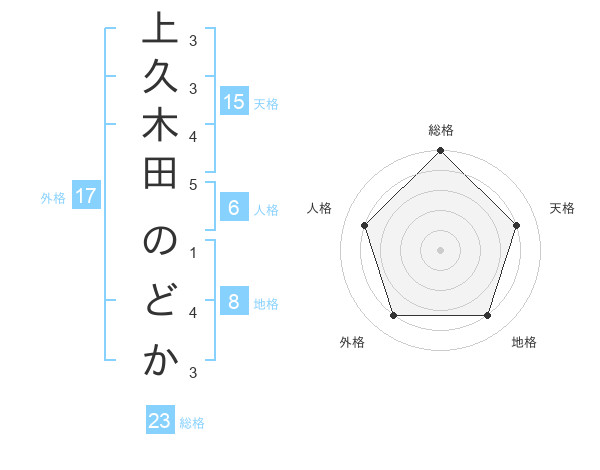 上久木田 のどかさんの総格は23画の5点!
