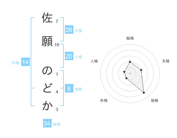 佐願 のどかさんを姓名の画数から五運を鑑定