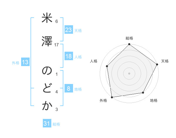 米澤 のどかさんを姓名の画数から五運を鑑定