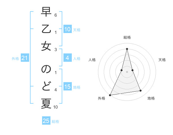 早乙女 のど夏さんを姓名の画数から五運を鑑定