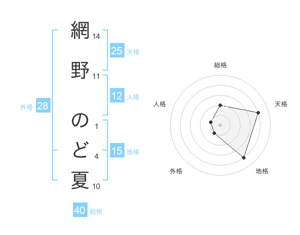 網野 のど夏さんを姓名の画数から五運を鑑定