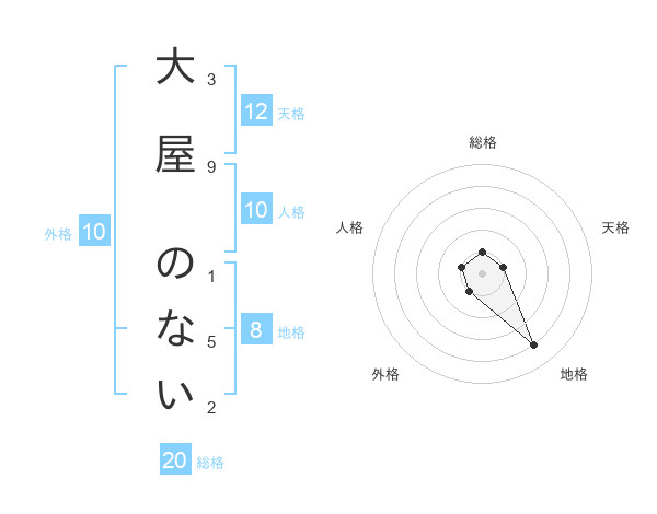 大屋 のないさんの総格は20画の1点!