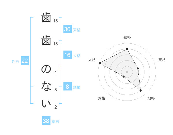 歯歯 のないさんの総格は38画の4点!