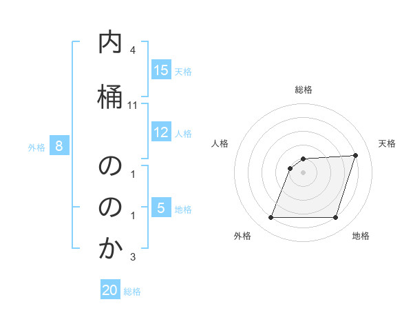 内桶 ののかさんを姓名の画数から五運を鑑定