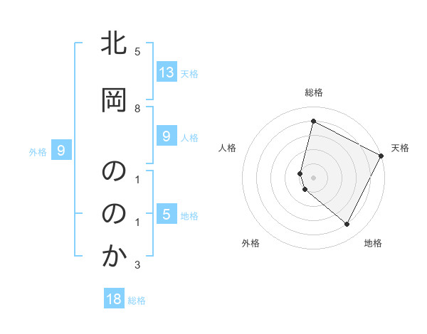 北岡 ののかさんの天格は13画の5点!