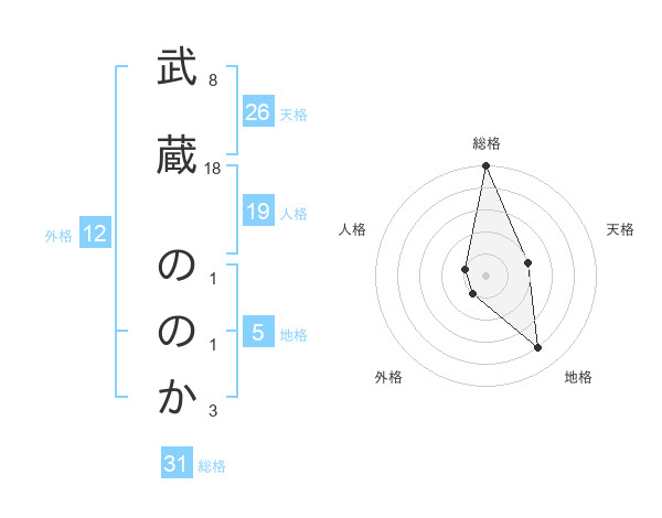 武蔵 ののかさんの総格は31画の5点!