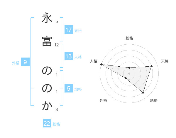 永富 ののかさんの天格は17画の4点!