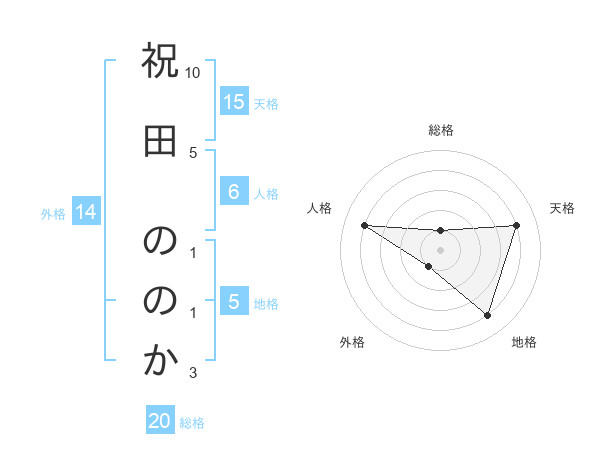 祝田 ののかさんの総格は20画の1点!