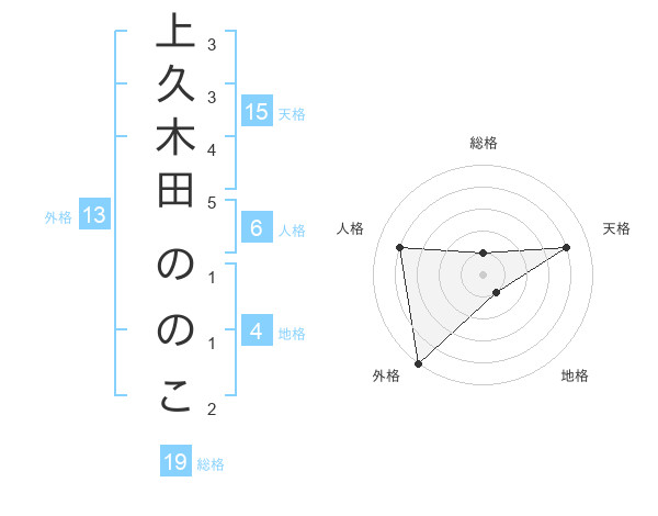 上久木田 ののこさんを姓名の画数から五運を鑑定