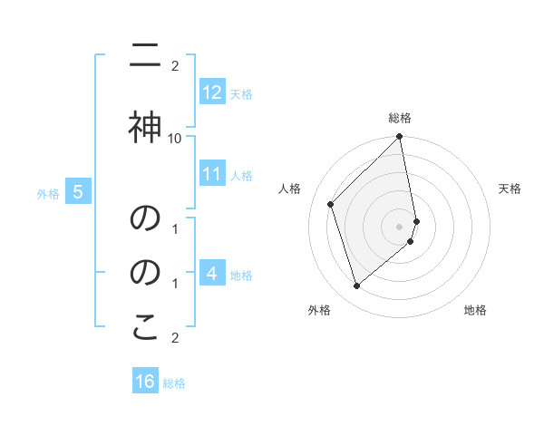 二神 ののこさんの総格は16画の5点!