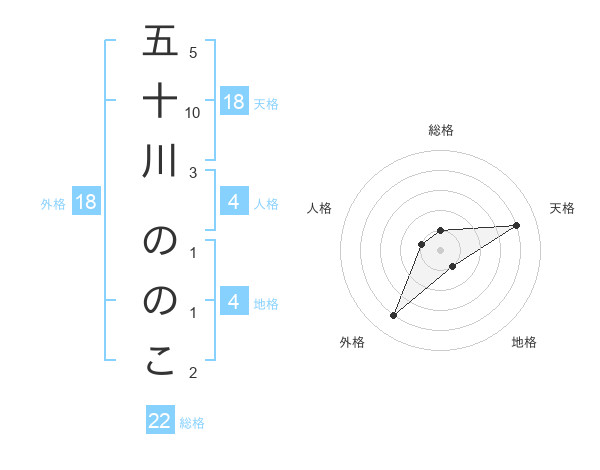 五十川 ののこさんを姓名の画数から五運を鑑定