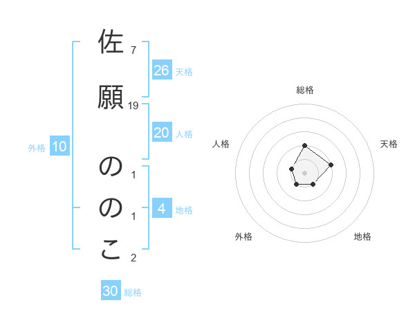 佐願 ののこさんの総格は30画の2点!