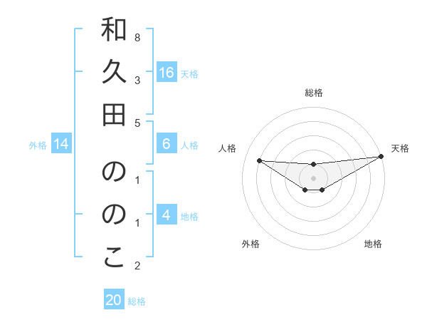 和久田 ののこさんを姓名の画数から五運を鑑定