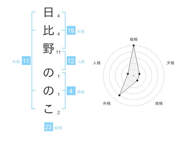 日比野 ののこさんを姓名の画数から五運を鑑定