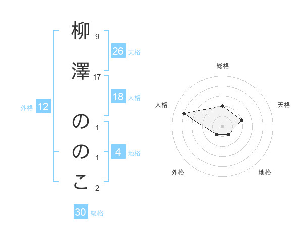 柳澤 ののこさんを姓名の画数から五運を鑑定