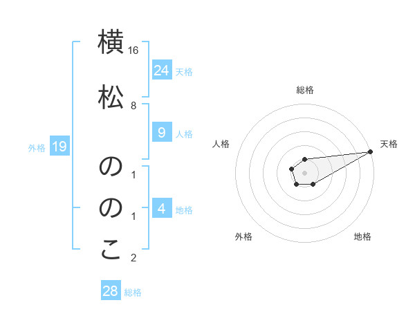 横松 ののこさんの総格は28画の1点!