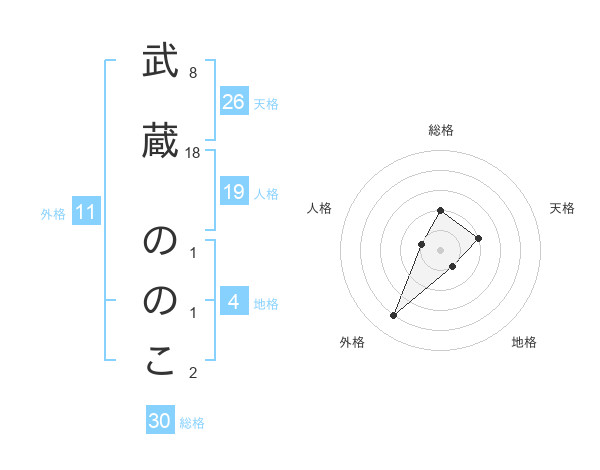 武蔵 ののこさんの総格は30画の2点!