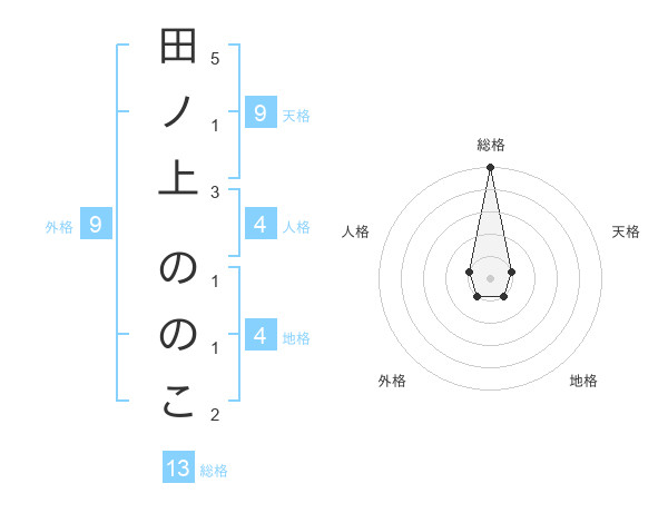 田ノ上 ののこさんを姓名の画数から五運を鑑定