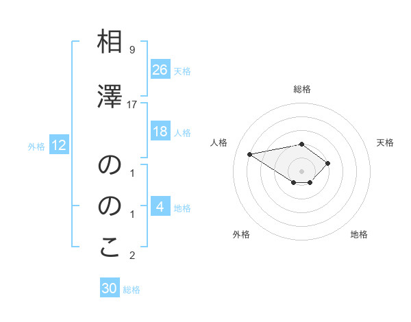 相澤 ののこさんを姓名の画数から五運を鑑定