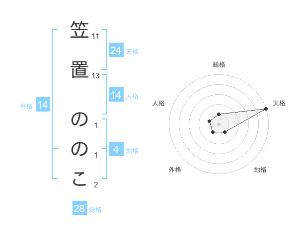 笠置 ののこさんの天格は24画の5点!